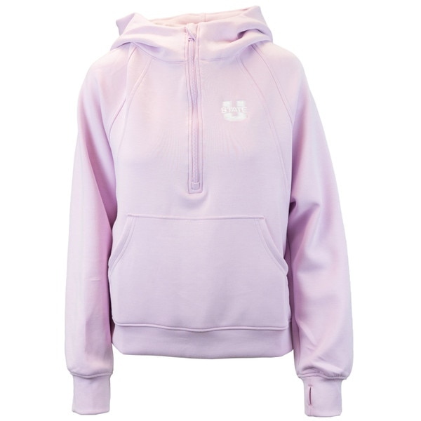 Stay cozy and stylish with the Women’s U-State Scuba Half-Zip Hoodie. Designed with a relaxed fit and soft scuba fabric, this hoodie offers the perfect balance of comfort and modern style. Featuring a sleek half-zip design and bold U-State logo, it’s an easy go-to for class, the gym, or cheering on the Aggies.